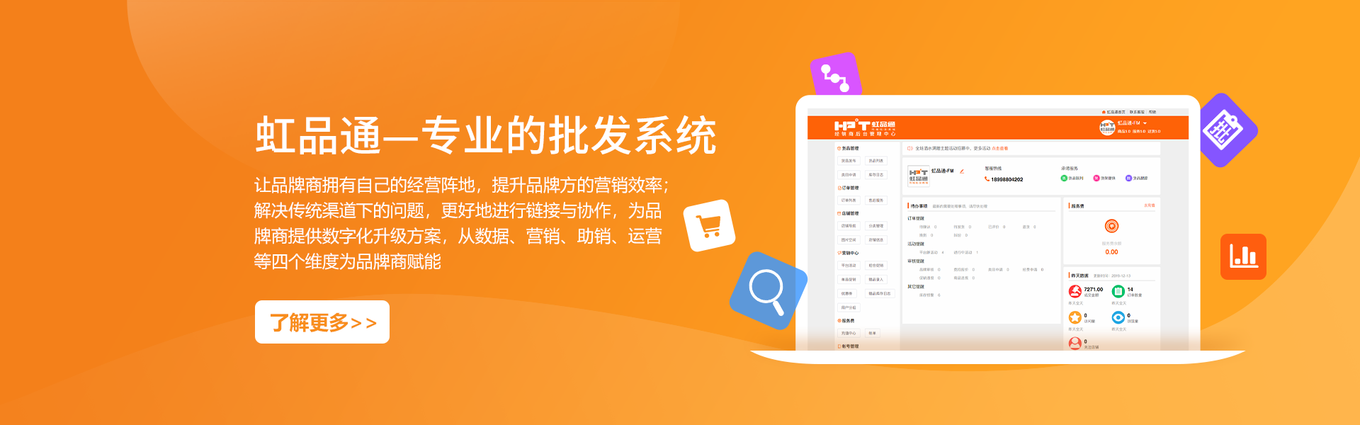南寧虹品通軟件科技有限公司成立于2014年,是一家開發(fā)軟件技術服務公司。公司總部位于中國綠城南寧市,專注軟件行業(yè)系統(tǒng)支持和供應鏈大數(shù)據(jù)開發(fā),并將其應用于商業(yè)領域。掌握供應鏈系統(tǒng)研發(fā)、商品流通大數(shù)據(jù)、批發(fā)零售商城等核心技術,并持有多項技術專利和著作權。公司致力于幫助生產廠家、商品流通、銷售型企業(yè)向互聯(lián)網化轉型升級,利用互聯(lián)網獲取客戶、洞察市場、服務客戶